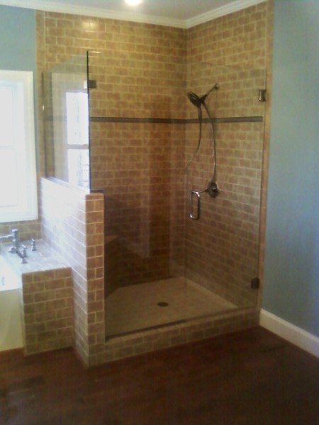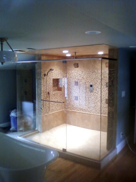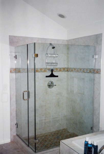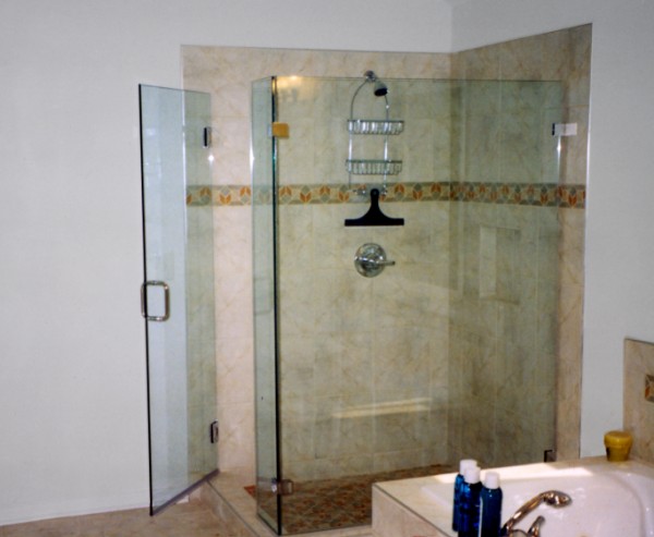 Our Heavy Glass frameless shower enclosures use 3/8” or ½” tempered safety glass. We offer “ShowerGuard” that seals and protects your shower door glass against hard water and soap scum.